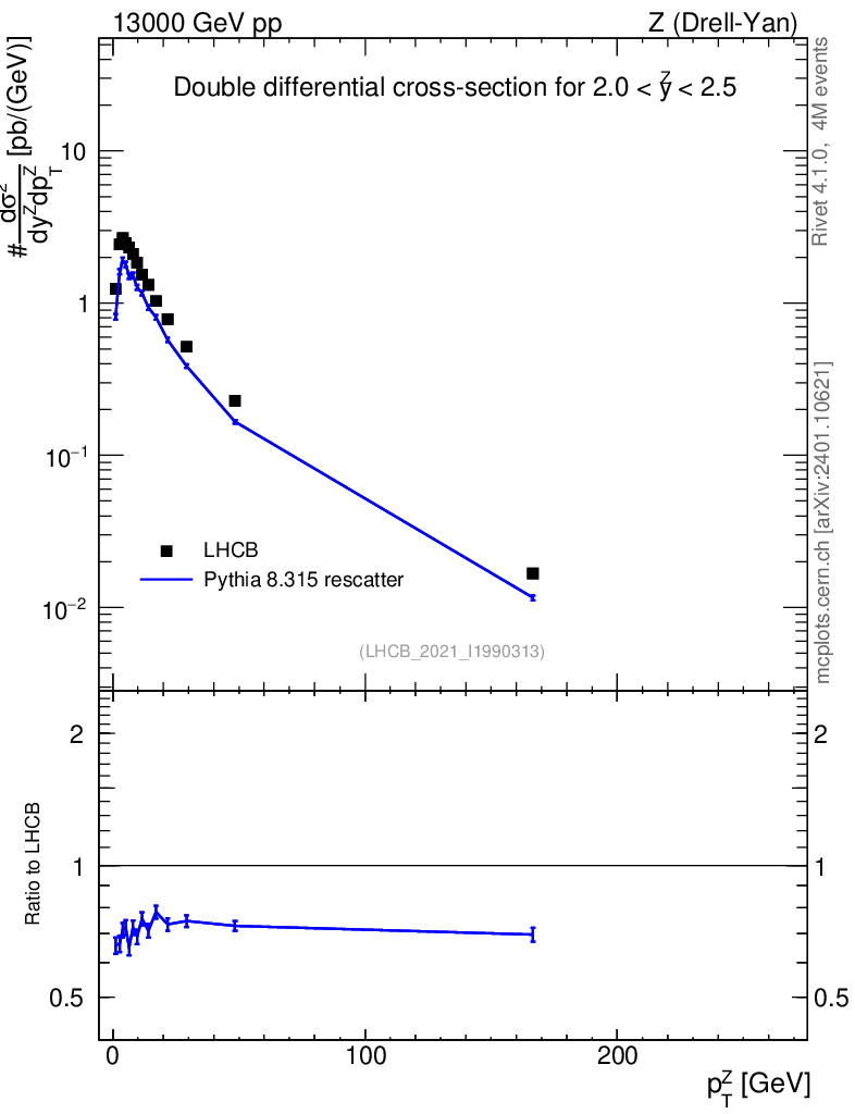 Lines: data, pythia8 8.315 rescatter |