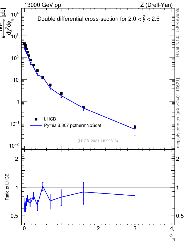 Lines: data, pythia8 8.307 ppthermNoScat |