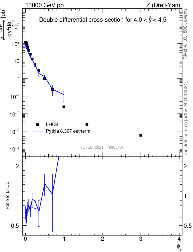 Lines: data, pythia8 8.307 eetherm |