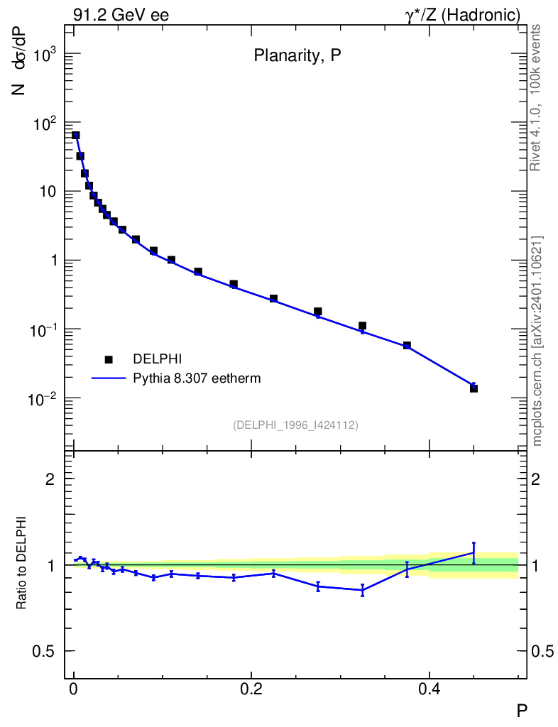 Lines: data, pythia8 8.307 eetherm |