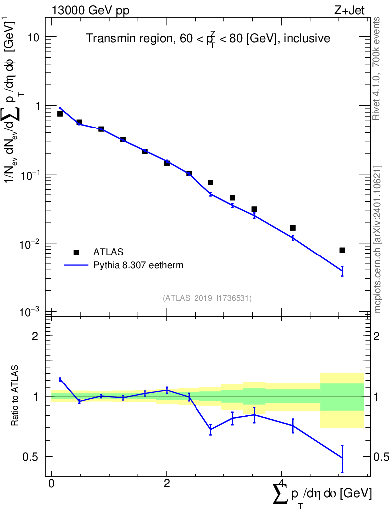 Lines: data, pythia8 8.307 eetherm |