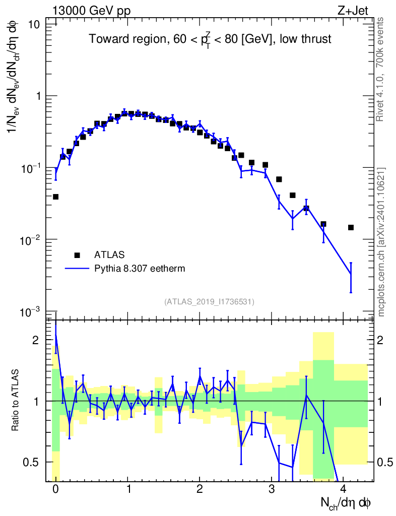 Lines: data, pythia8 8.307 eetherm |