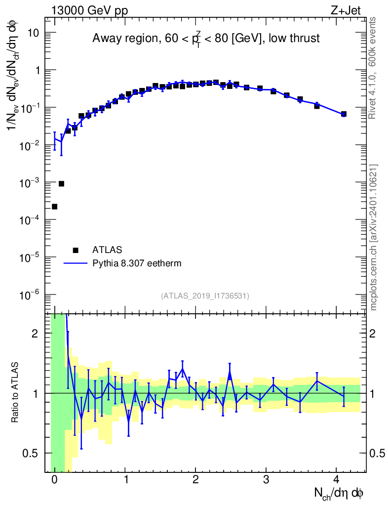 Lines: data, pythia8 8.307 eetherm |