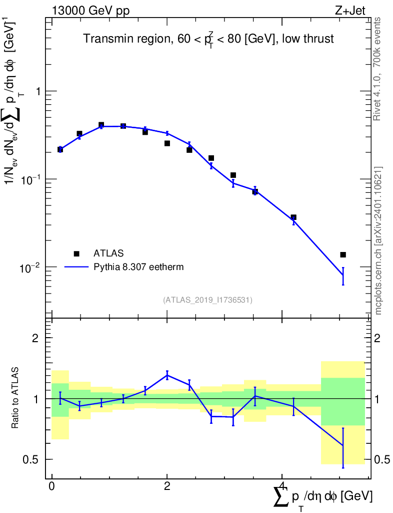 Lines: data, pythia8 8.307 eetherm |