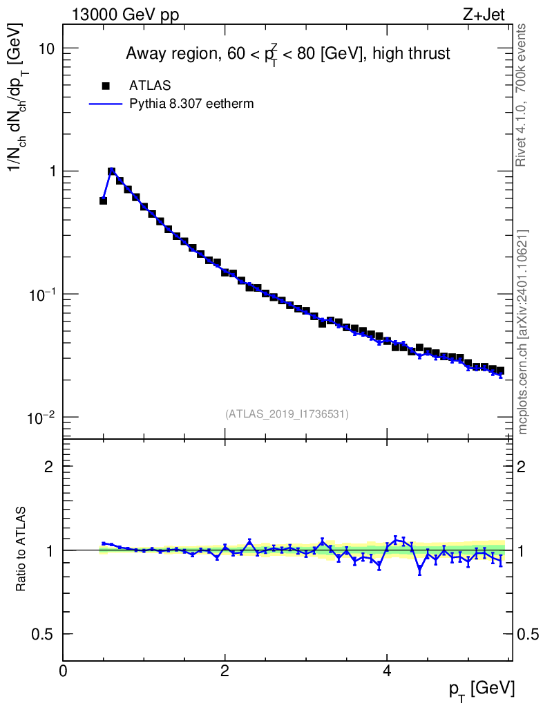 Lines: data, pythia8 8.307 eetherm |