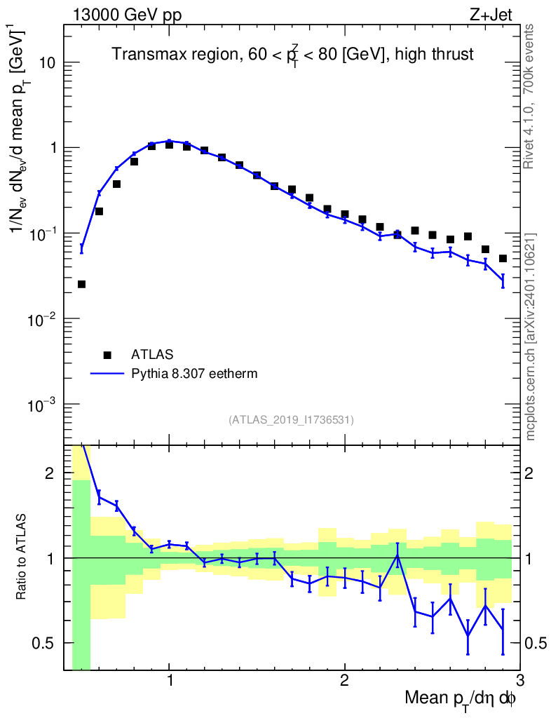 Lines: data, pythia8 8.307 eetherm |