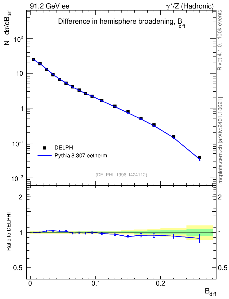 Lines: data, pythia8 8.307 eetherm |