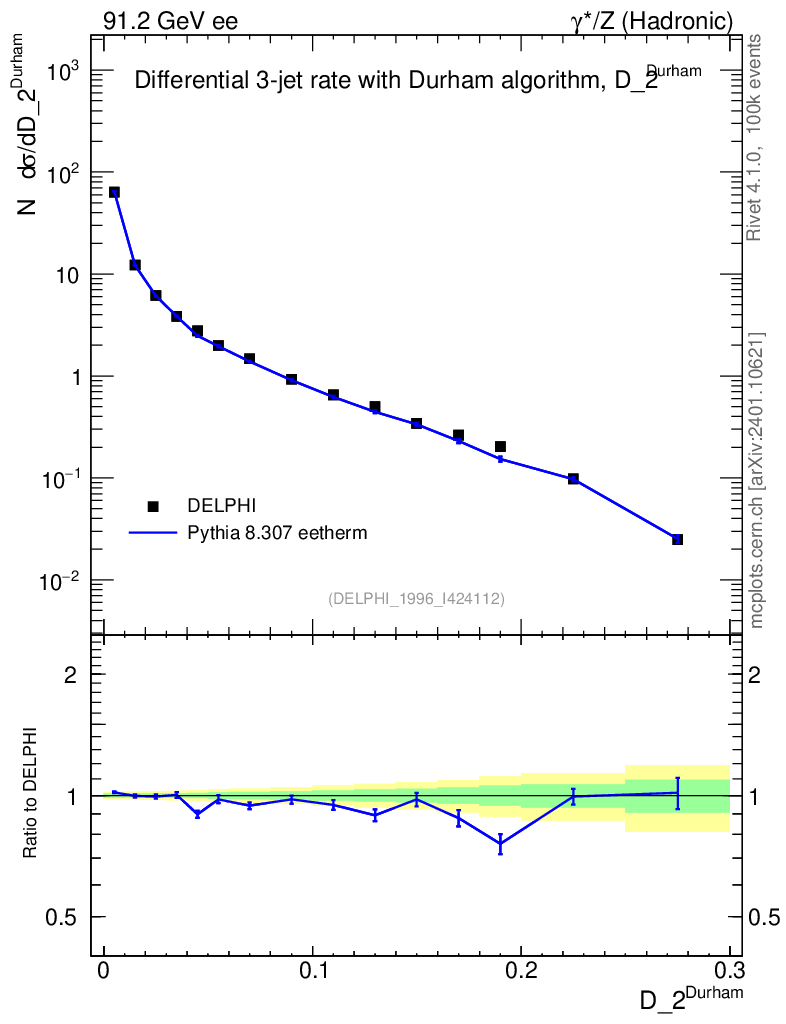 Lines: data, pythia8 8.307 eetherm |
