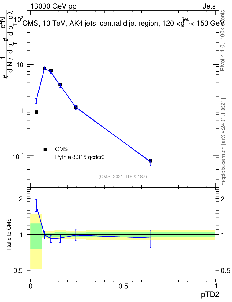 Lines: data, pythia8 8.315 qcdcr0 |