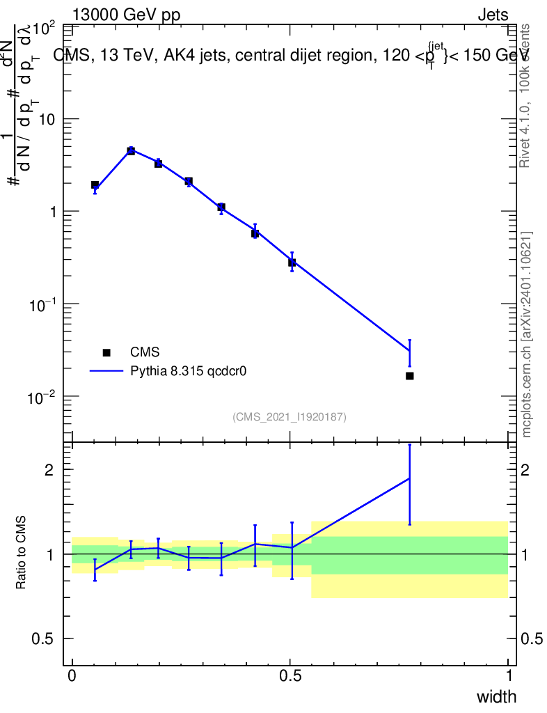 Lines: data, pythia8 8.315 qcdcr0 |