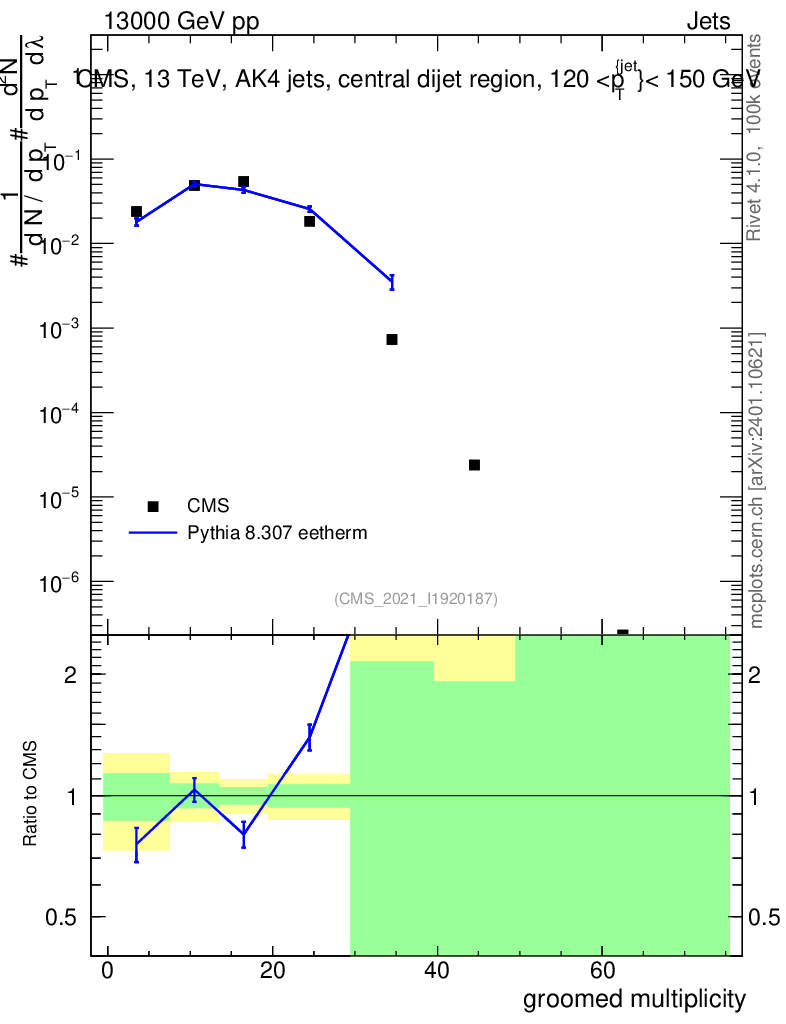 Lines: data, pythia8 8.307 eetherm |