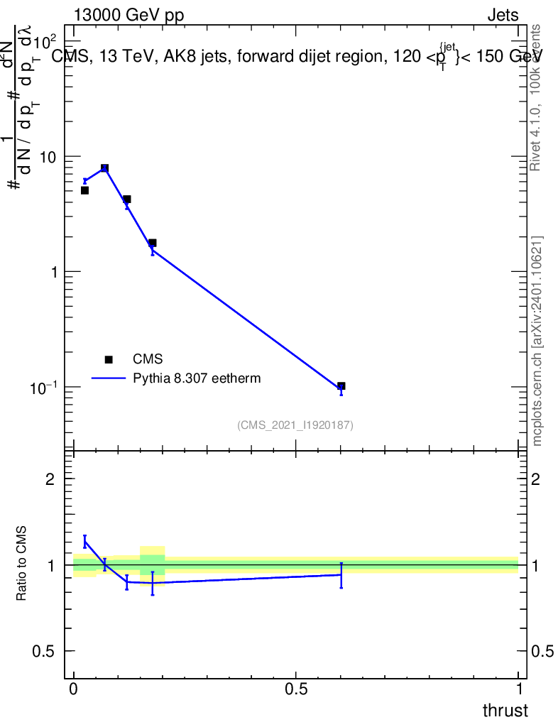 Lines: data, pythia8 8.307 eetherm |