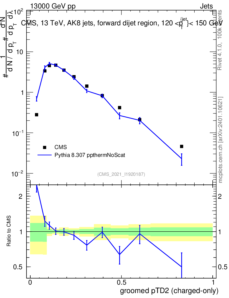 Lines: data, pythia8 8.307 ppthermNoScat |