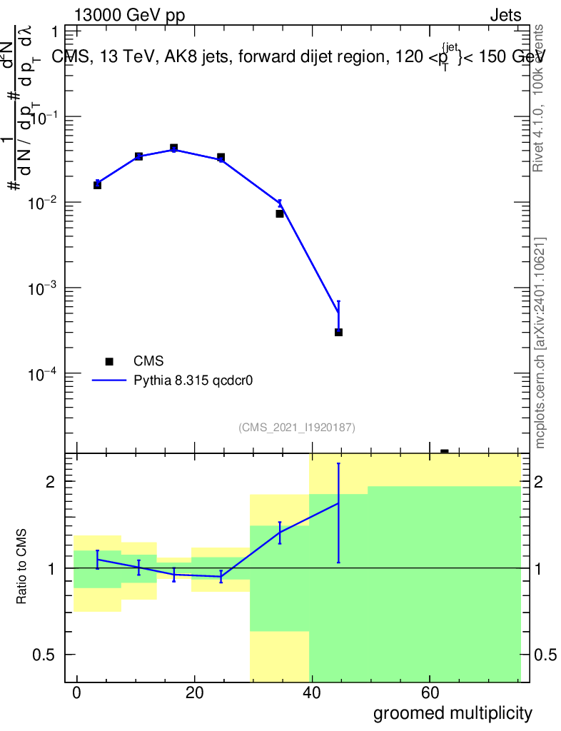 Lines: data, pythia8 8.315 qcdcr0 |