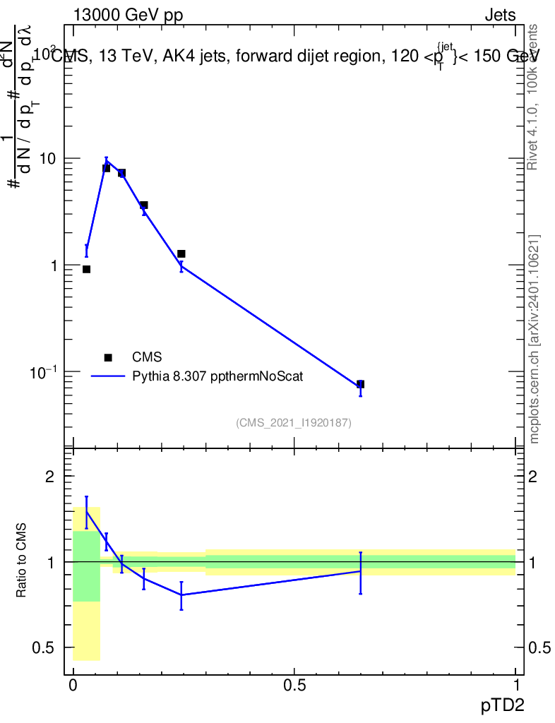 Lines: data, pythia8 8.307 ppthermNoScat |