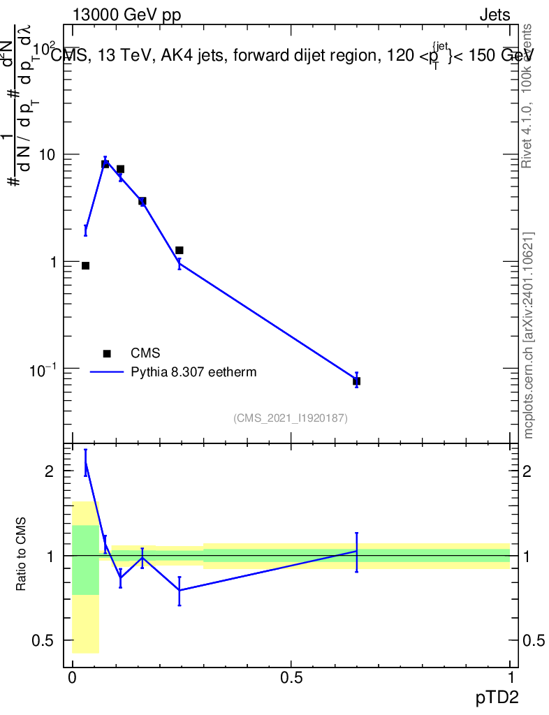 Lines: data, pythia8 8.307 eetherm |