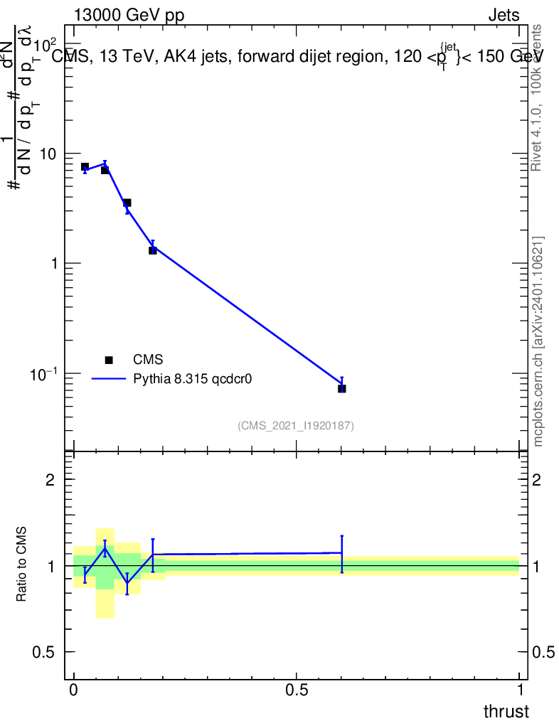 Lines: data, pythia8 8.315 qcdcr0 |