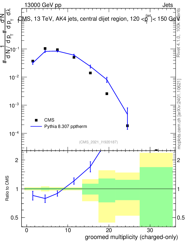 Lines: data, pythia8 8.307 pptherm |