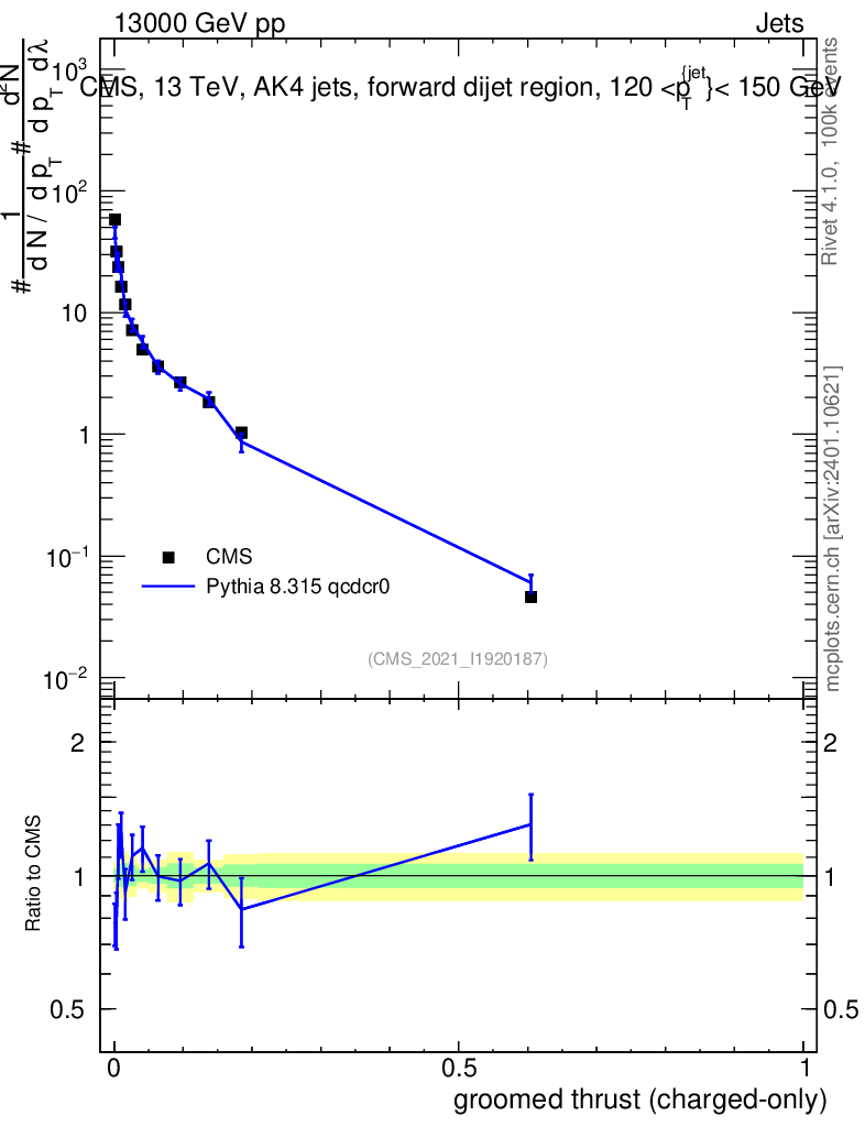 Lines: data, pythia8 8.315 qcdcr0 |