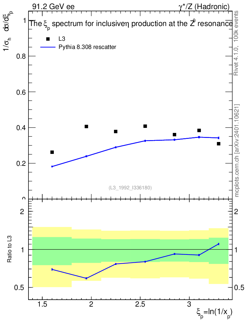 Lines: data, pythia8 8.308 rescatter |