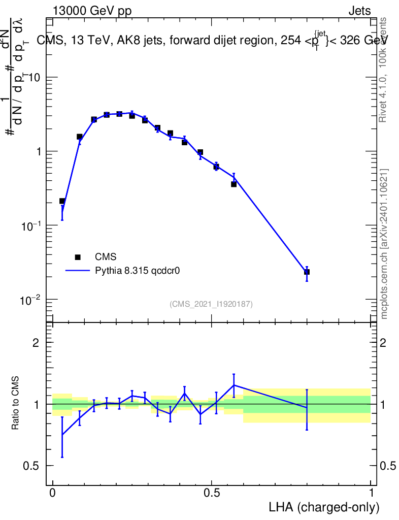 Lines: data, pythia8 8.315 qcdcr0 |