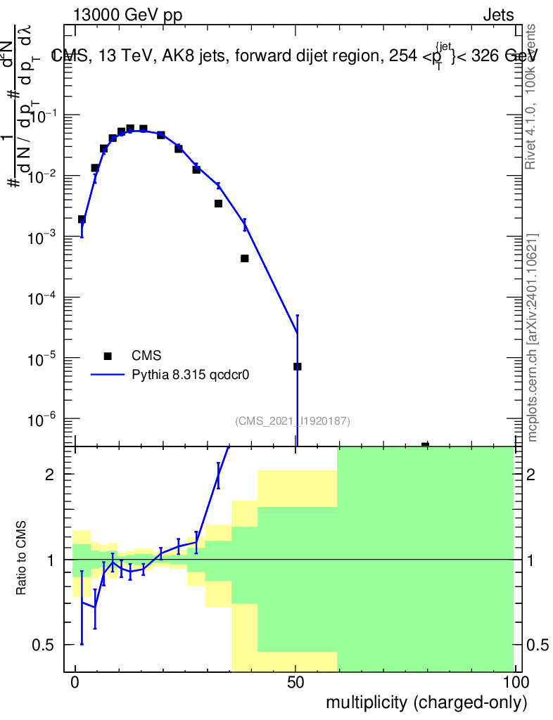Lines: data, pythia8 8.315 qcdcr0 |