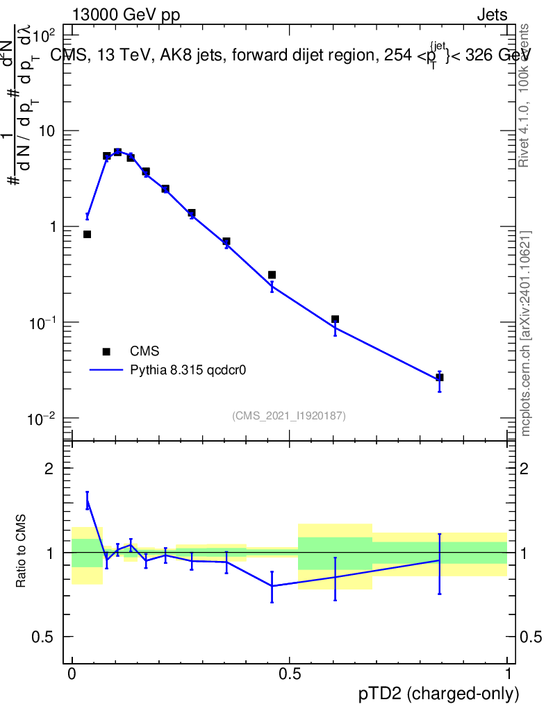 Lines: data, pythia8 8.315 qcdcr0 |