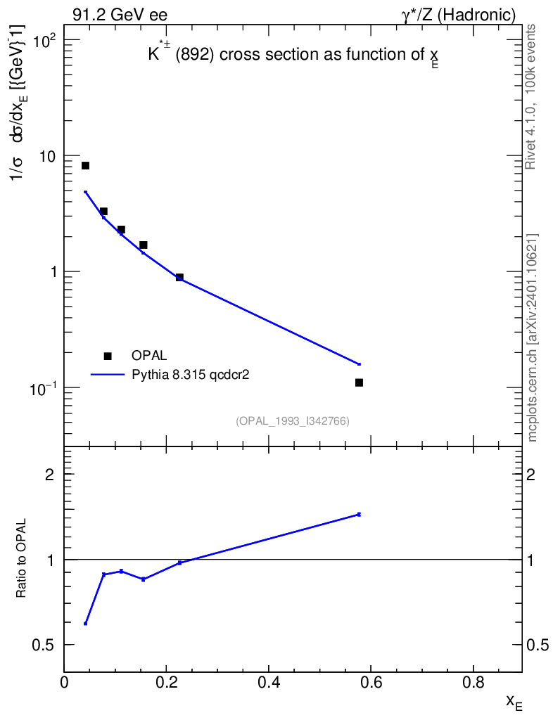 Plot of xKst in 91.2 GeV ee collisions