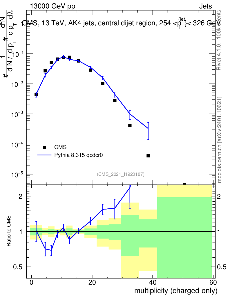 Lines: data, pythia8 8.315 qcdcr0 |