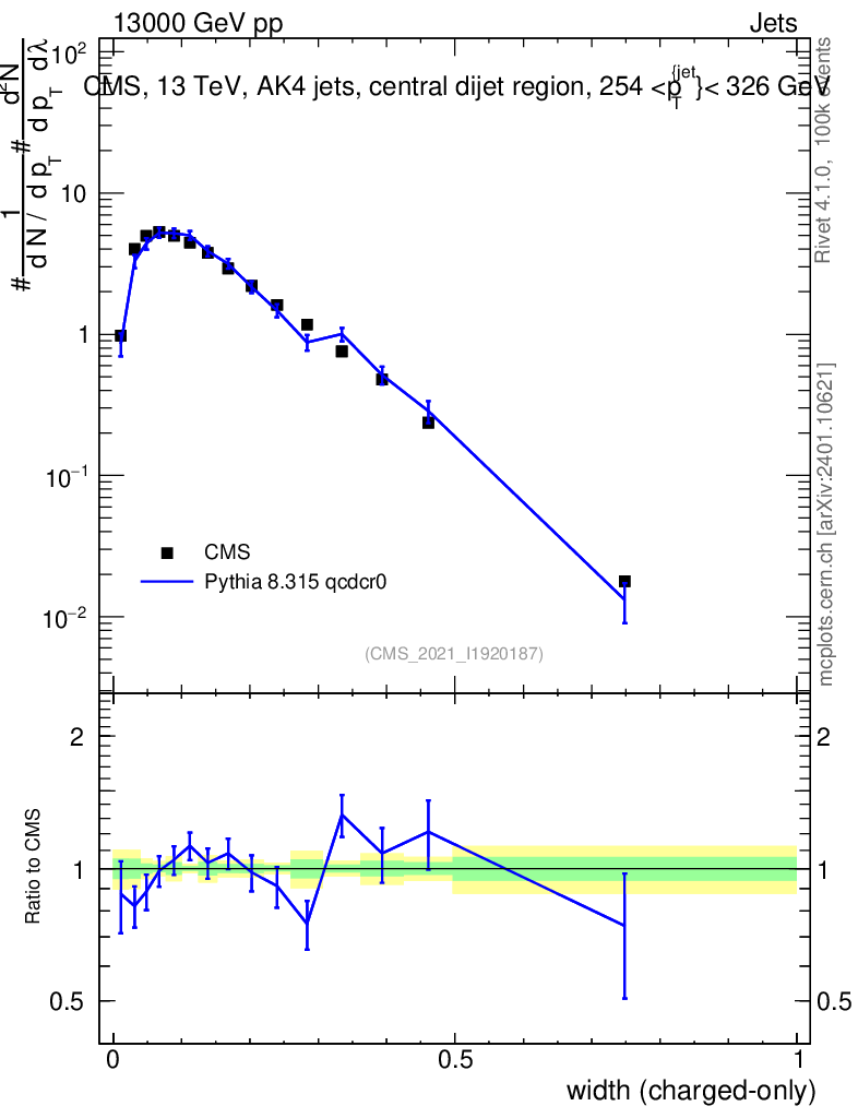 Lines: data, pythia8 8.315 qcdcr0 |