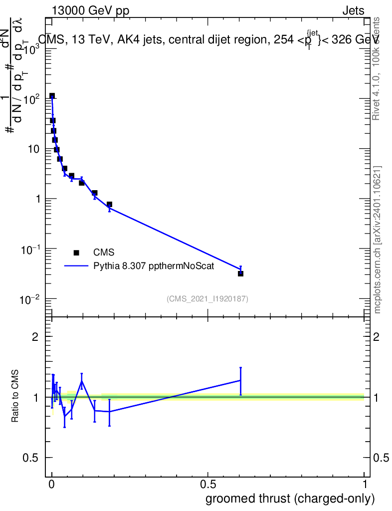Lines: data, pythia8 8.307 ppthermNoScat |