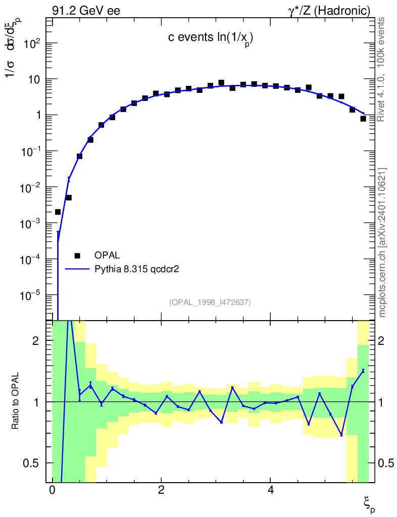 Plot of xln in 91.2 GeV ee collisions