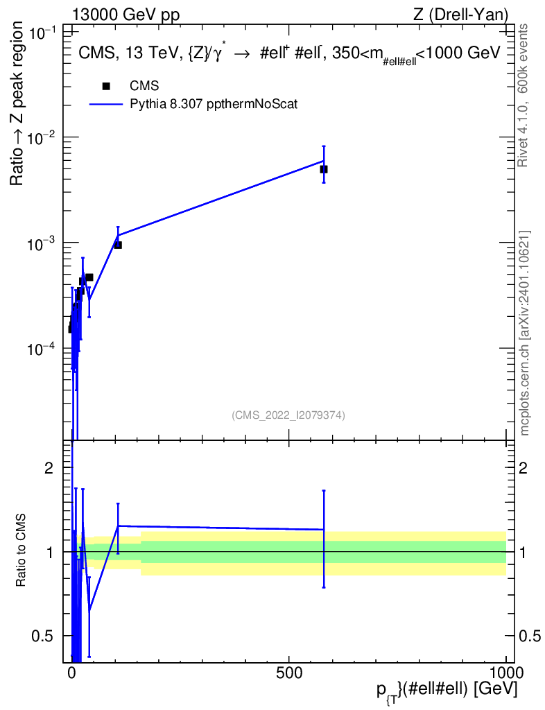 Lines: data, pythia8 8.307 ppthermNoScat |