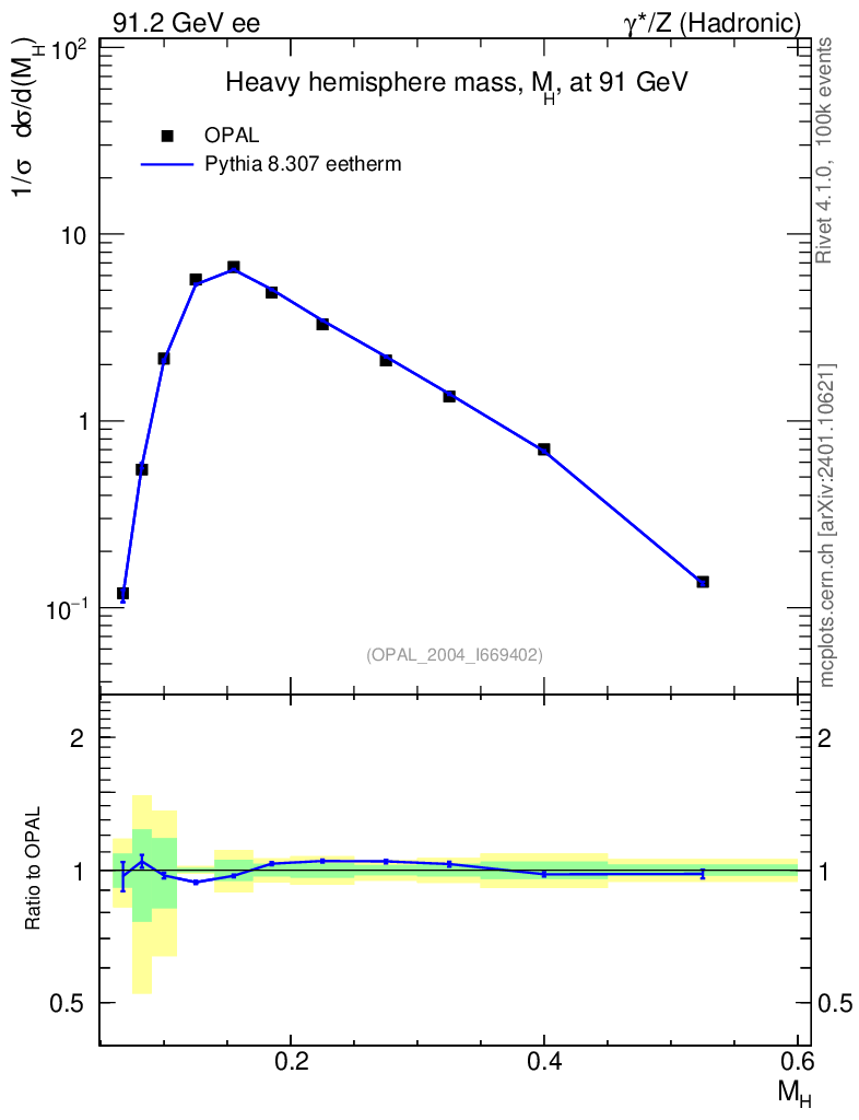 Lines: data, pythia8 8.307 eetherm | compare with other tunes