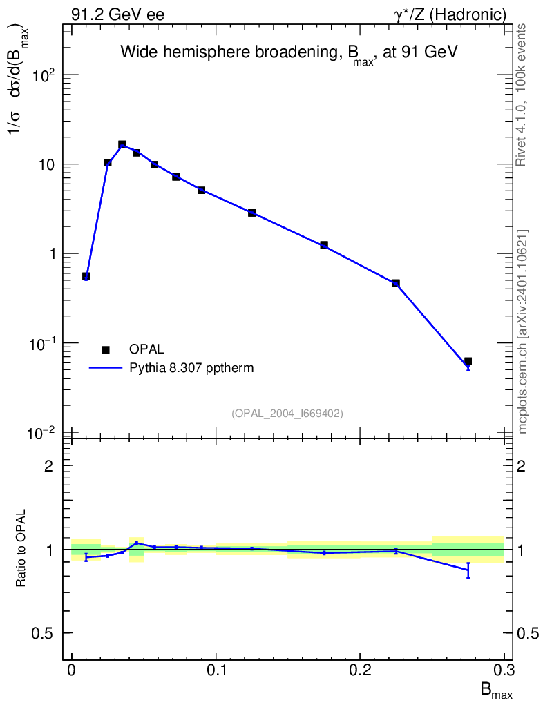 Lines: data, pythia8 8.307 pptherm |