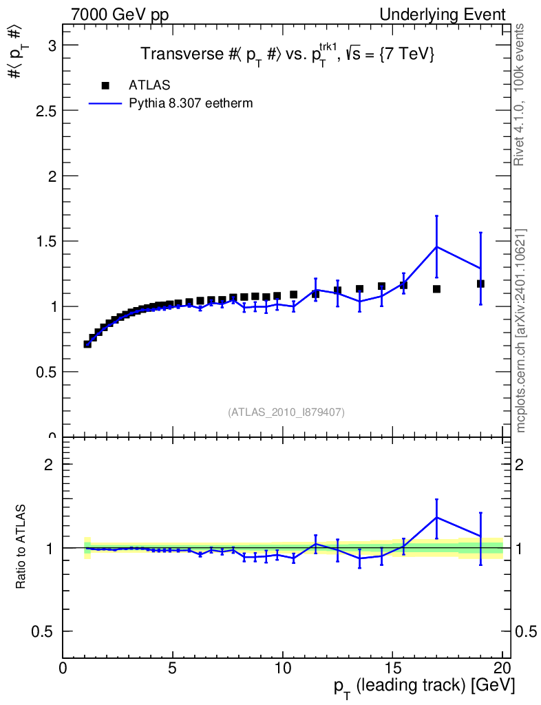 Lines: data, pythia8 8.307 eetherm |