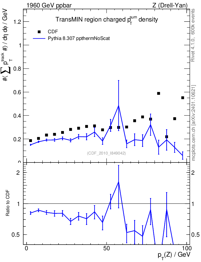 Lines: data, pythia8 8.307 ppthermNoScat |