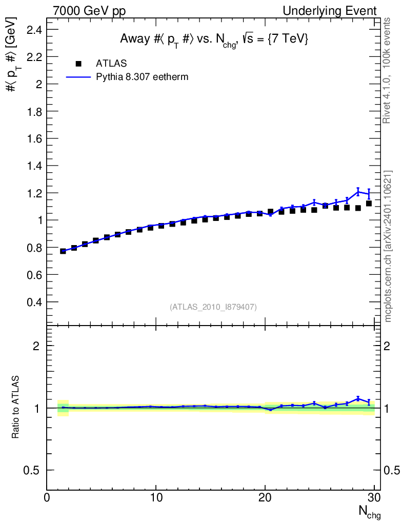 Lines: data, pythia8 8.307 eetherm |