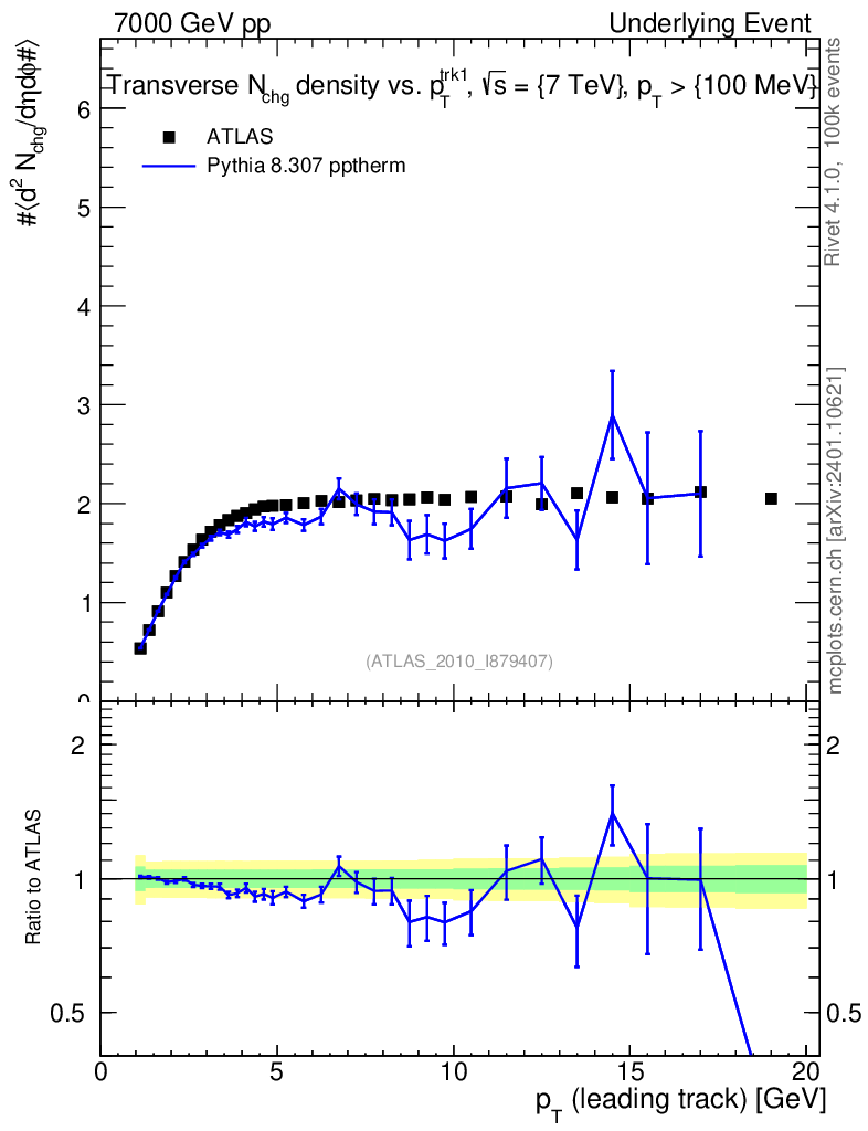 Lines: data, pythia8 8.307 pptherm |