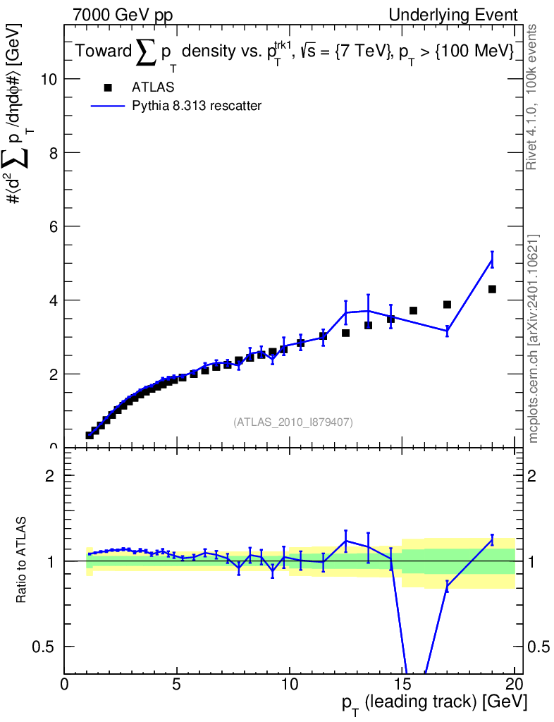 Lines: data, pythia8 8.313 rescatter |