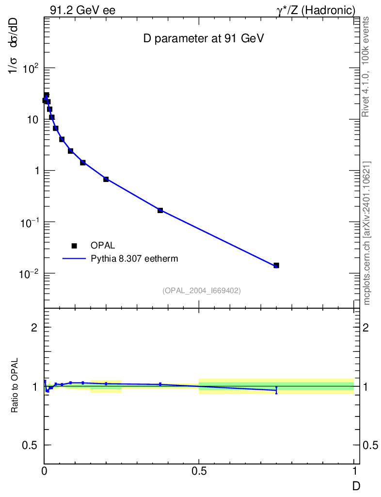Lines: data, pythia8 8.307 eetherm |