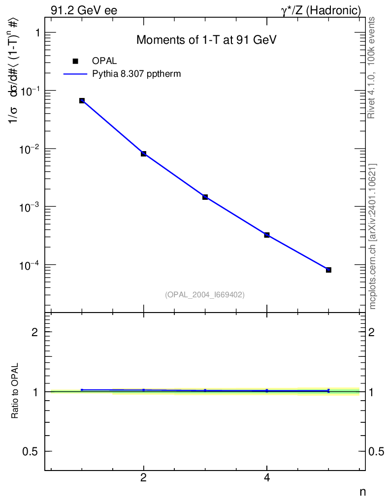 Lines: data, pythia8 8.307 pptherm |