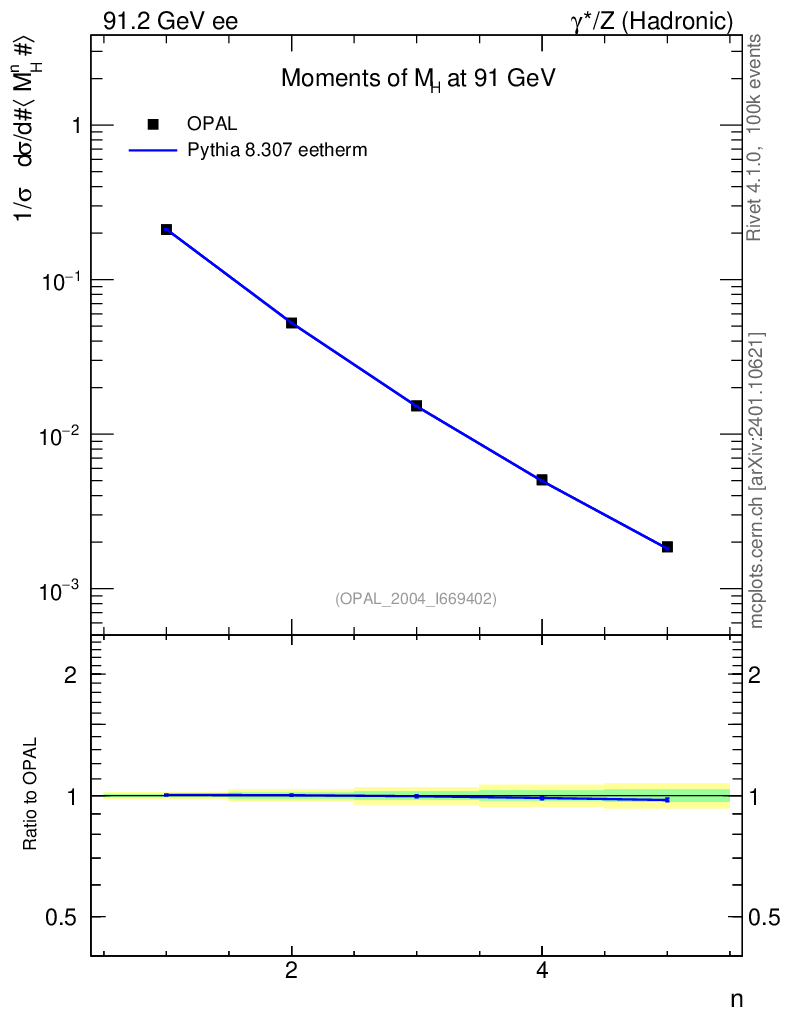 Lines: data, pythia8 8.307 eetherm |