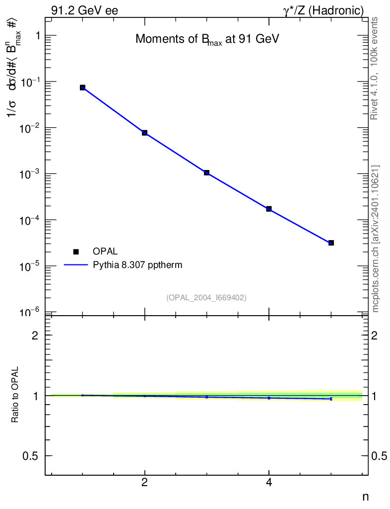 Lines: data, pythia8 8.307 pptherm |