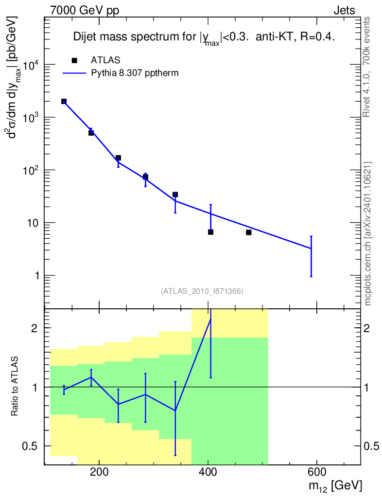 Lines: data, pythia8 8.307 pptherm |