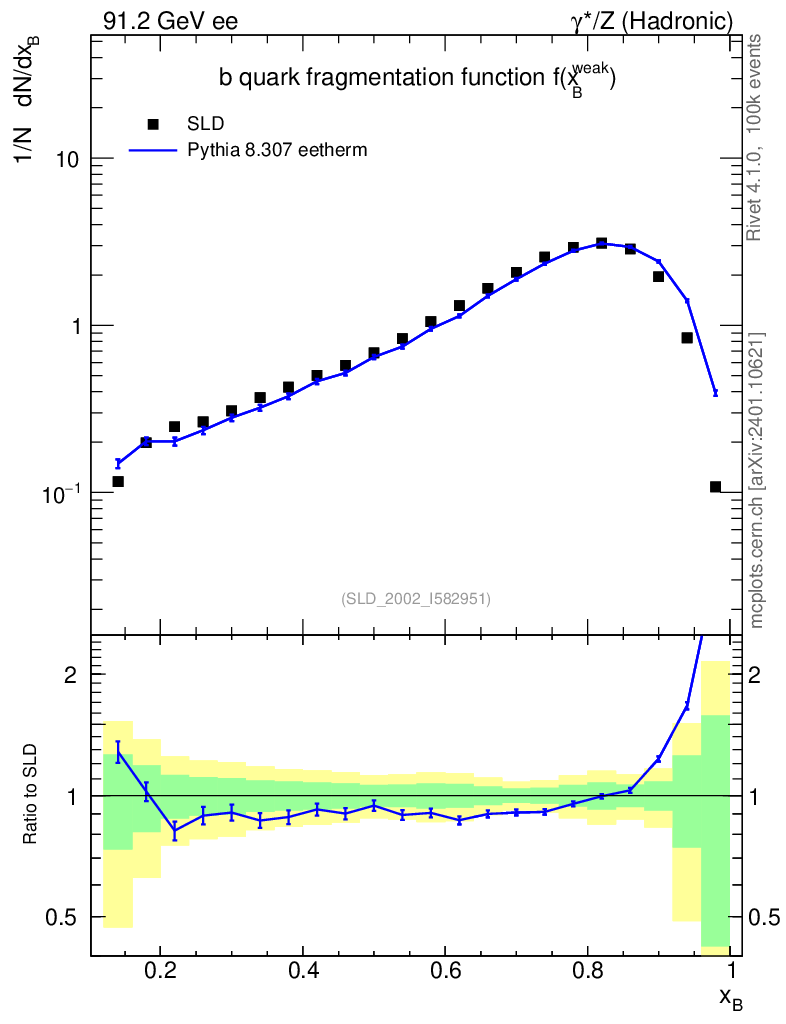 Lines: data, pythia8 8.307 eetherm |