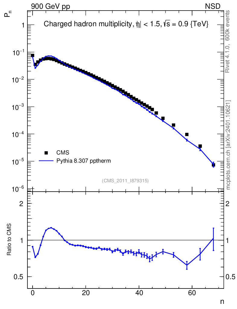 Lines: data, pythia8 8.307 pptherm |