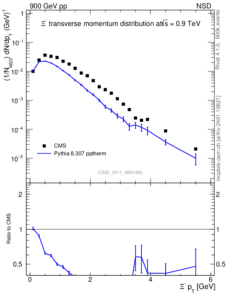 Lines: data, pythia8 8.307 pptherm |