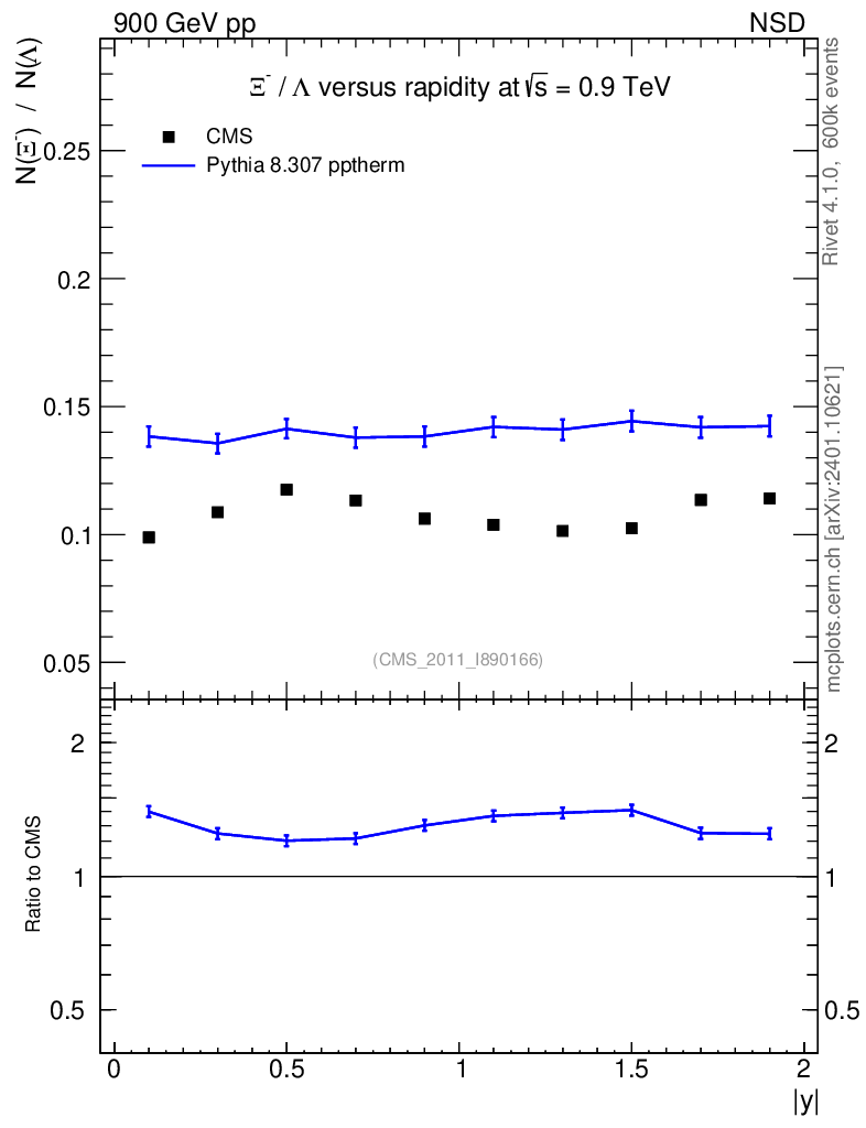 Observable: Ξ-/Λ vs |y|