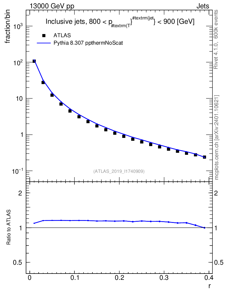 Lines: data, pythia8 8.307 ppthermNoScat |